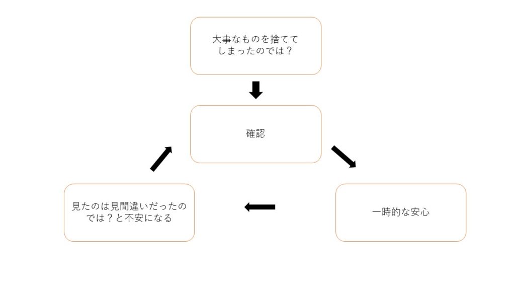 またゴミに捨てますが「やっぱり何かはいっていたかも」「見落としていたかも」と不安になり、また確認します。